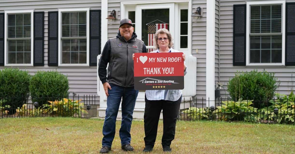 At J. Carnes & Son Roofing, we take pride in delivering top-quality roofing solutions that leave our customers smiling. That’s why we created the “I Love My New Roof™” campaign, a special initiative that showcases the joy and satisfaction of homeowners who have chosen J. Carnes & Son Roofing for their roofing needs. When you work with us, not only do you get a durable and beautiful new roof, but you also become part of our growing family of happy customers. We love to feature our clients proudly holding their “I Love My New Roof™” sign in front of their newly installed roof. It’s our way of saying thank you for trusting J. Carnes & Son Roofing.